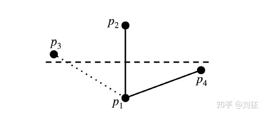 用在这张图上,p1连接了p2、p3、p4,其中p1p3会被裁掉。